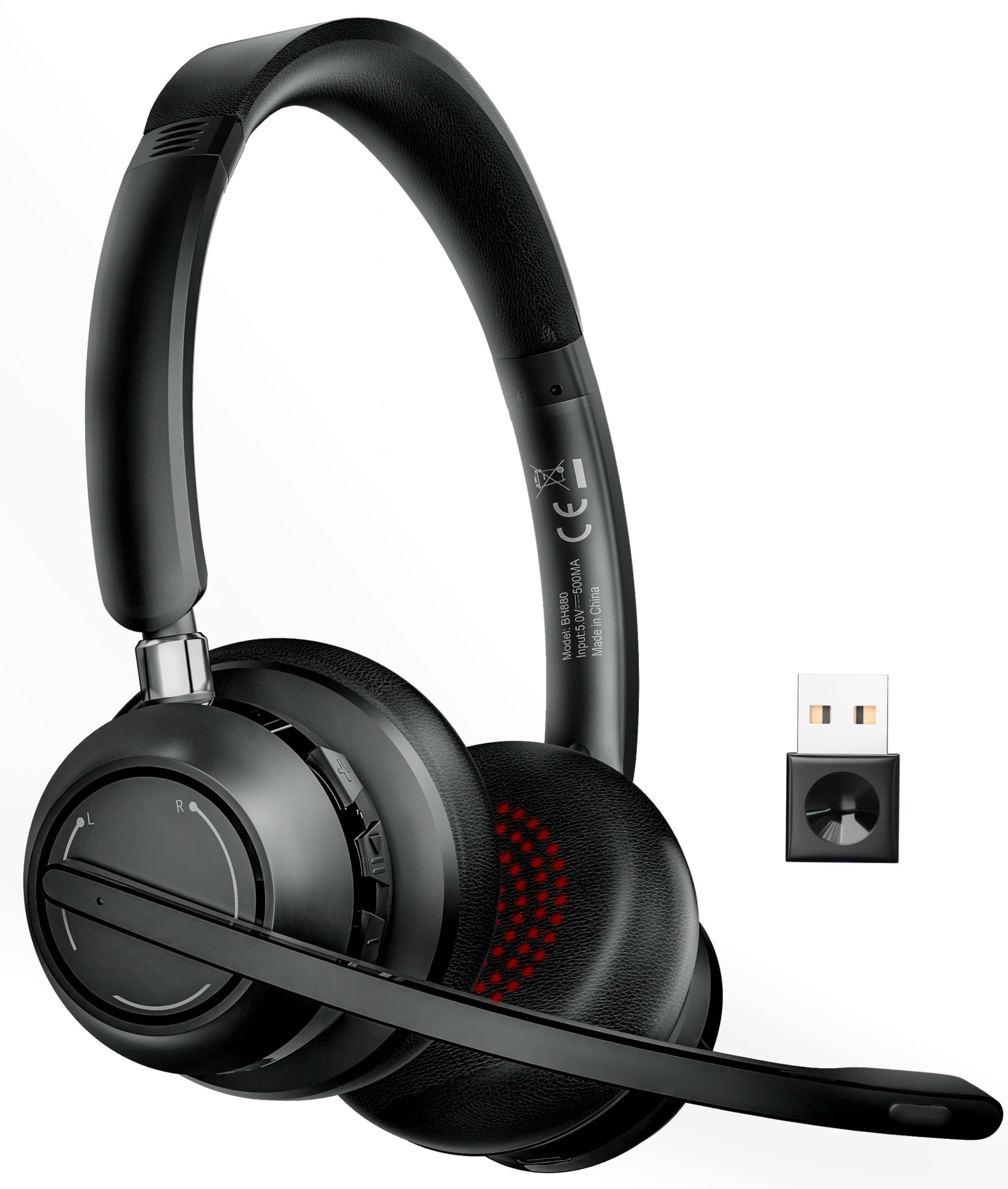 SUNITEC Headset mit Mikrofon, Kabellos Bluetooth Headset mit Mikrofon, 45H Stunden Sprechzeit für Laptop/PC/Mac, Wireless 5.1 mit USB A Dongle mit …