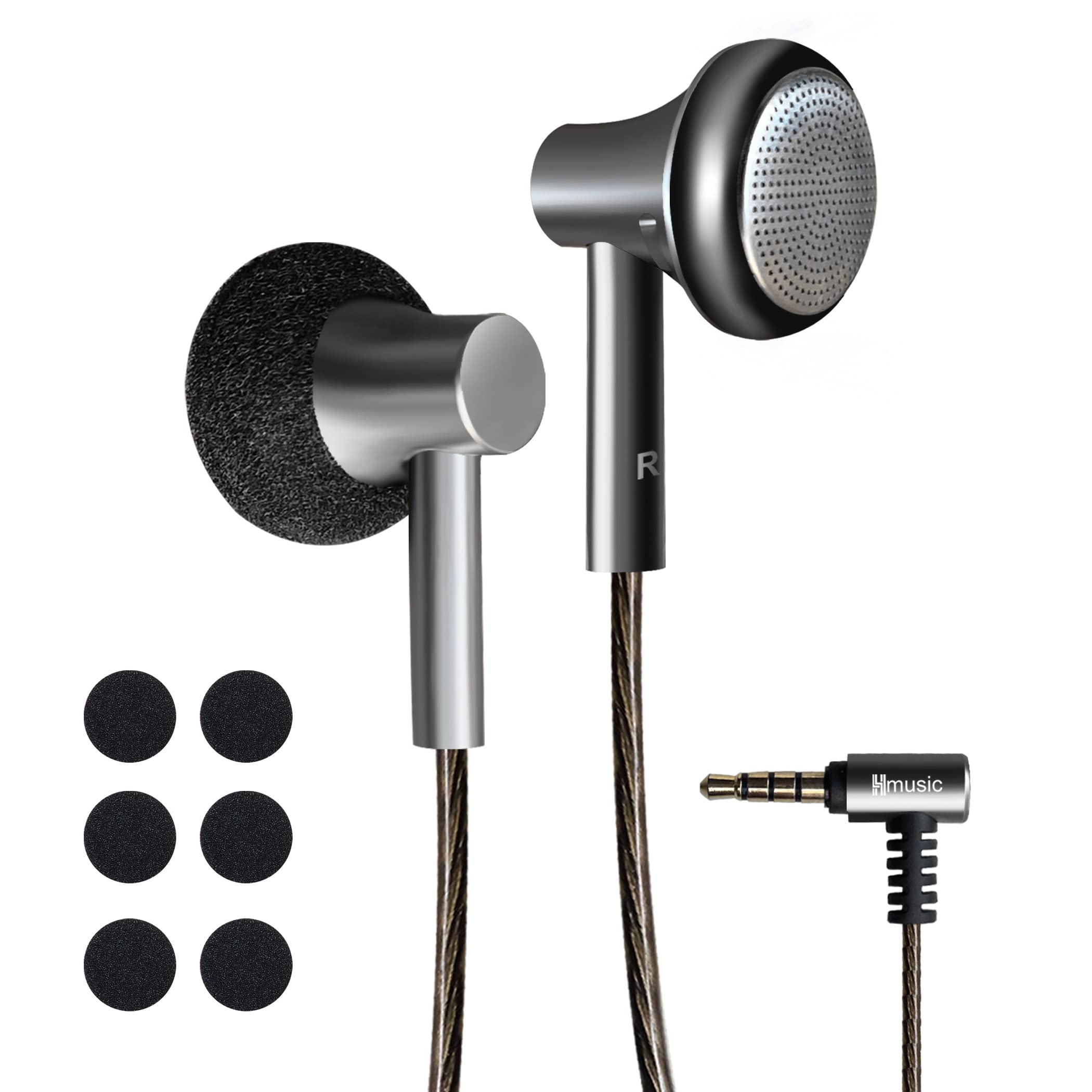 Hmusic Flachkopf Ohrhörer, 14,2 mm dynamischer Treiber kabelgebundene Ohrstöpsel, HiFi Stereo Sound Klassische Kopfhörer mit Mikrofon und …