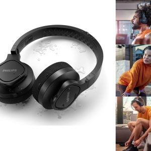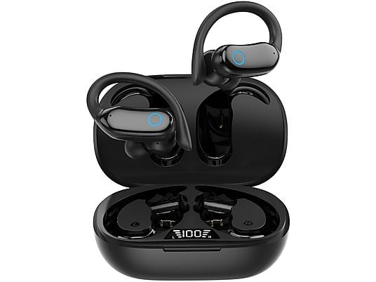 INF Kabelloser Sportkopfhörer mit Ohrhaken IPX7 wasserdicht, In ear Kopfhörer Bluetooth schwarz